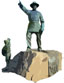 On the corner of South Park View Street and Wilshire Boulevard across the American Cement Lofts building a set of bronze statues can be seen. A newspaper boy in the process of hawking his wares stands next to a figure of General Harrison Gray Otis himself. General Otis’s arm is extended, pointing toward the site where his old home was and the former location of the Otis Art Institute. The newspaper boy—modeled after Andrew Azzoni, a boy whose father knew the sculptor of the statues—holds up a newspaper with one arm and carries several with the other. Absent from the set is the statue of a soldier carrying an unfurled flag, an unfortunate victim of a collision with a car. The “Otis Group,” designed by Russian prince Paul Troubetzkoy and unveiled to the public on August 3, 1920, was created for the General Harrison Gray Otis Memorial Association formed after Otis passed away in 1917. A committee within the organization was tasked with deciding what would be appropriate for a tribute to the late Otis. After coming to the conclusion that a bronze statue worth $50,000 would “best express the purposes of the organization” the committee invited sculptors to send in their designs. Out of all the submissions, Troubetzkoy’s design was chosen. As evidenced by the accompanying inscription, the three statues represented Otis’s roles in life as a “soldier, journalist [and] friend of freedom.” |