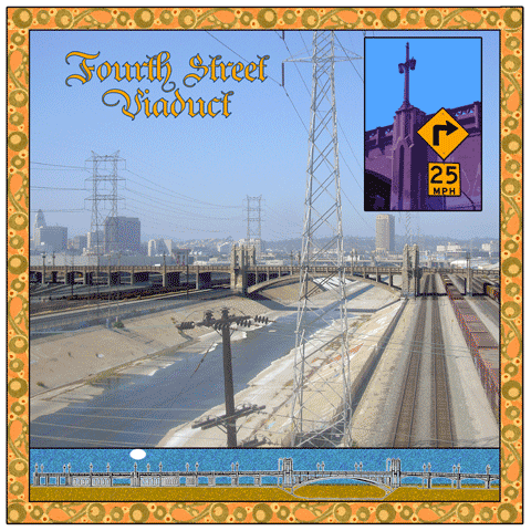 The North Broadway Viaduct is completed in 1911. In 1926, upon the suggestion of Mrs. ASC Forbes this viaduct is dedicated to John C. Fremont--instigator of the Bear Flag Revolt in 1846 and to whom Mexican forces surrender at the close of the Mexican American War in 1947. In 1941 police find a 15' piece of concrete ornamentation and car's bumper in the riverbed. By 1949 parts of the concrete structure can be pulled apart with one's bare hands and must undergo renovations. |