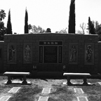 Created by the Chinese community in 1888, the shrine was designated in 1990 as a 19th Century Los Angeles Chinese Cemetery Shrine Historic-Cultural Monument No. 486 and underwent a two-phase renovation project from 1993 to 1997. With a central altar and two kilns surrounded by an iron wrought gate, the shrine serves as the setting for the Chinese Historical Society of Southern California’s annual Ching Ming to honor ancestors, which involves a grave cleaning. Irvin Lai of the Chinese Historical Society of Southern California refurbished the shrine in the late 1980s--it had been covered in mud and nearly inaccessible. After the MTA controversy in 2006, an ad hoc committee was formed that agreed to the reburial of the unearthed bodies and artifacts from next to the Chinese shrine. In addition to a memorial marking graves in the lawn, a large wall was installed with recreations of the recovered headstones. The headstones have a poem inscribed on them. return to map |
